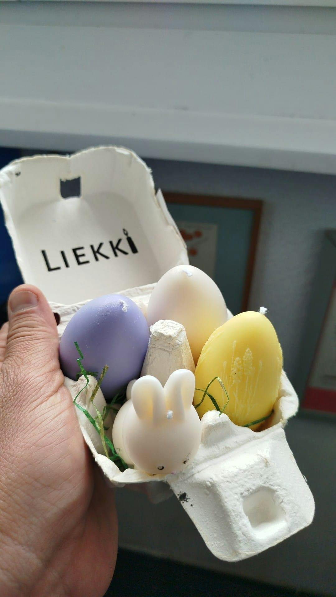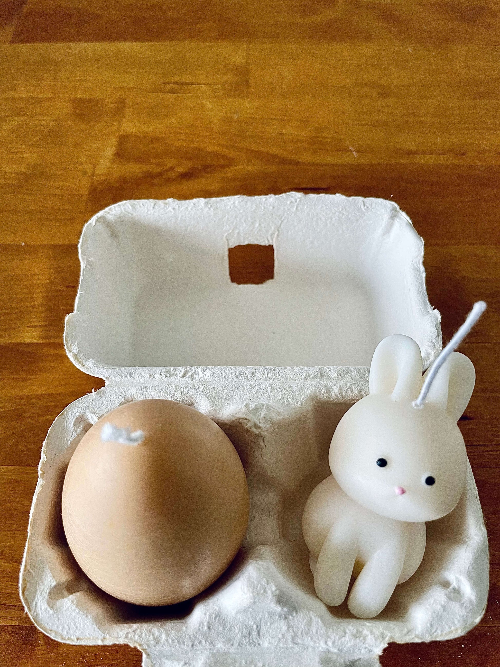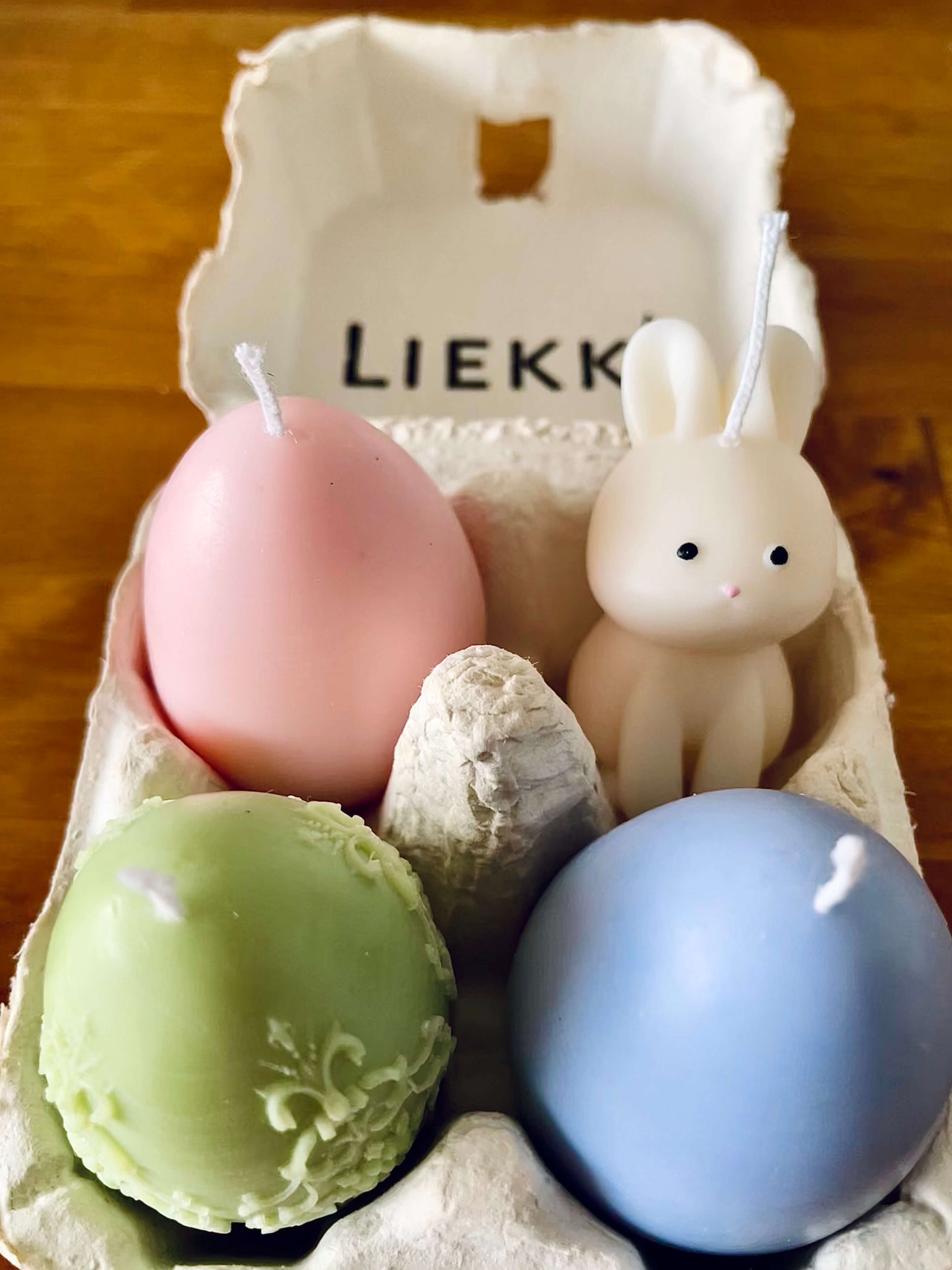 - Vierer-Set: Enthält ein weisses Häschen sowie drei unterschiedlich gefärbte oder gemusterte Ostereier. Freuen Sie sich auf eine kleine Überraschung: Eines der Eier verbirgt ein "Eigelb" – welches? Das erfahren Sie, wenn Sie es anzünden!