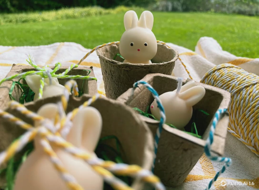 Ein bezauberndes Häschen, liebevoll von bunten Ostereiern umringt: Diese handgefertigte Kerze zaubert eine fröhliche Osterstimmung und den Hauch von Frühling in Ihr Zuhause. Perfekt für eine liebevolle Osterdekoration!